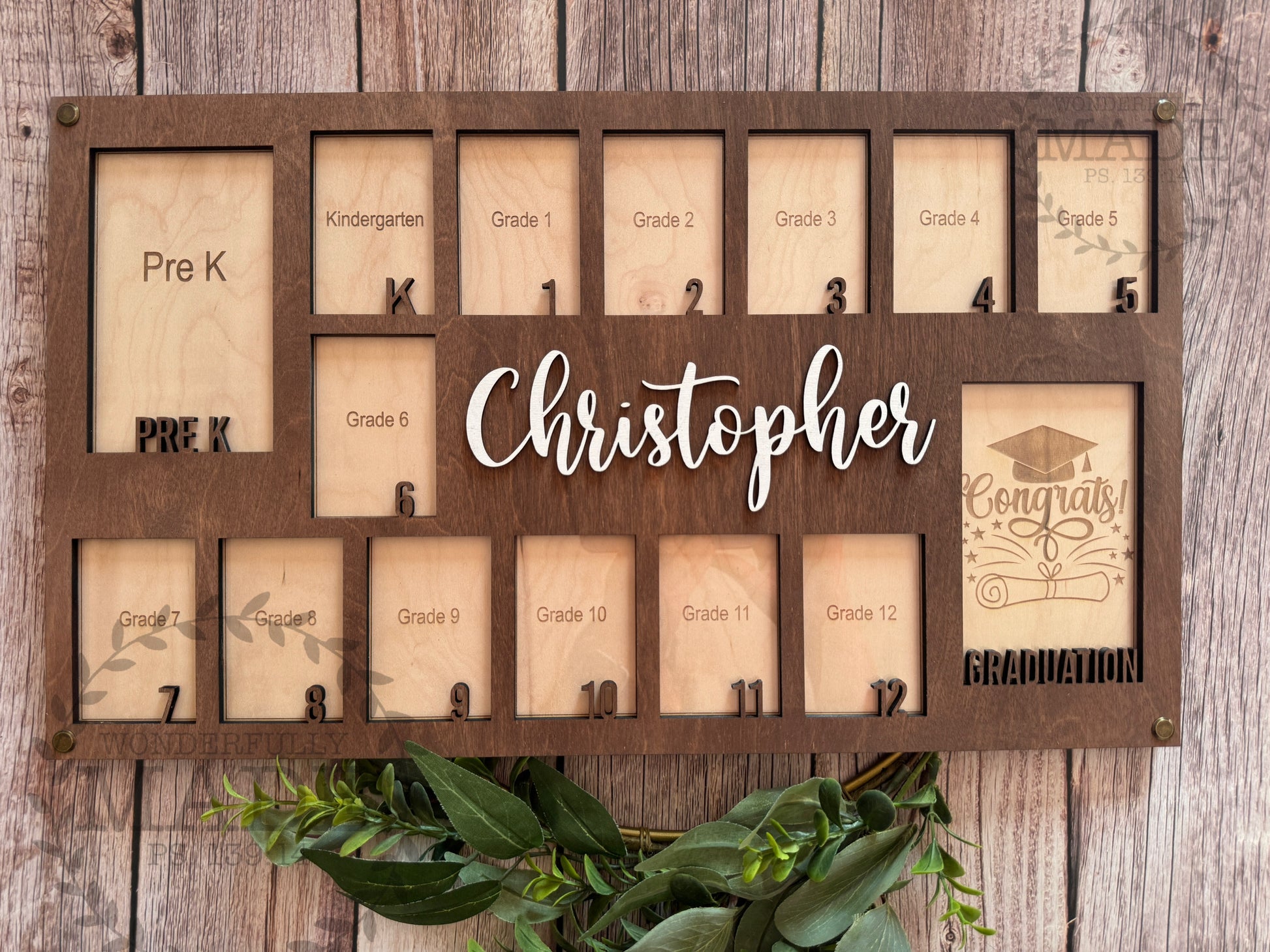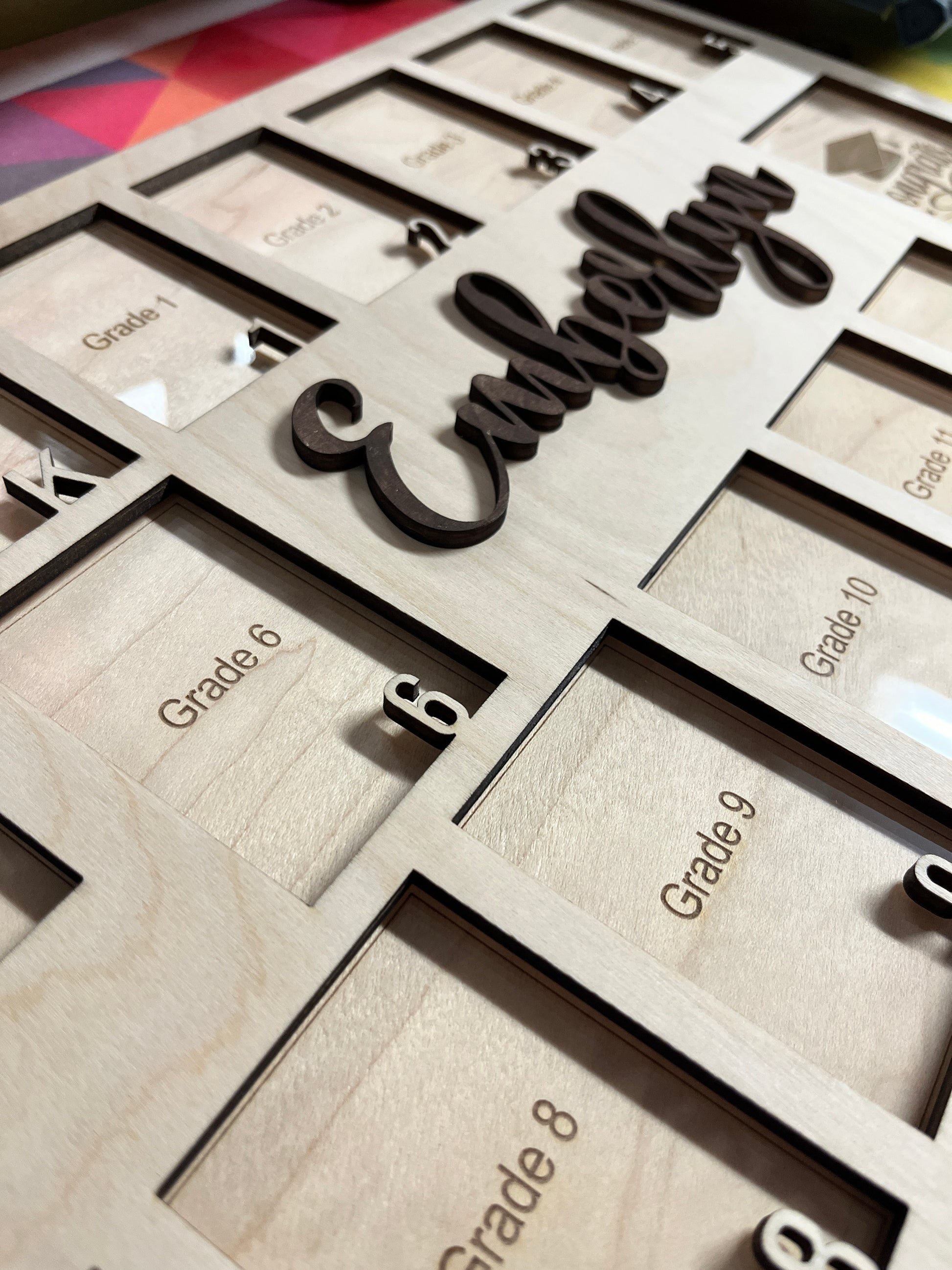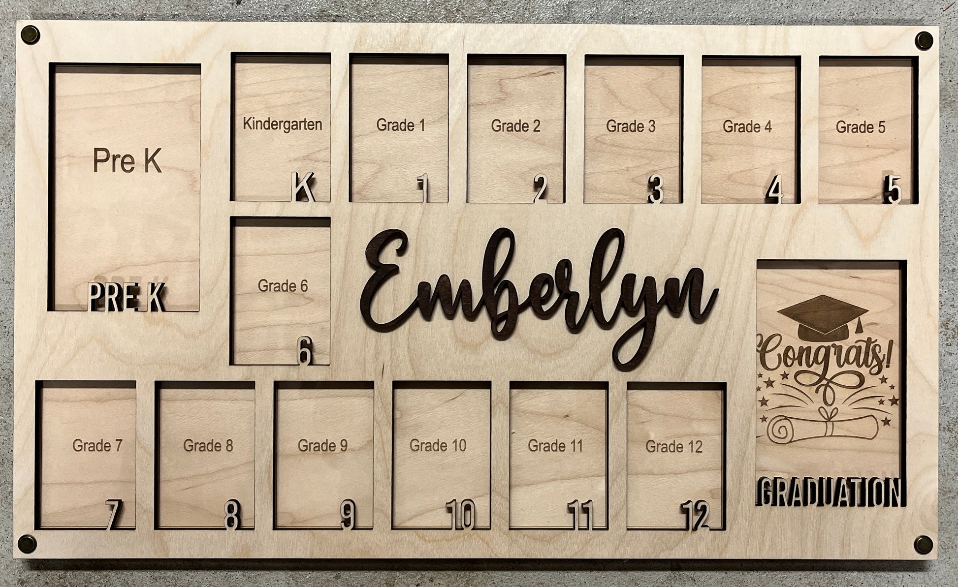 Capture every step of your academic journey with our Pre K to Graduation school picture frame. Crafted from high-quality birch, maple and clear acrylic, this frame beautifully displays your memories from Pre K all the way to graduation. Preserve your life's milestones in style!