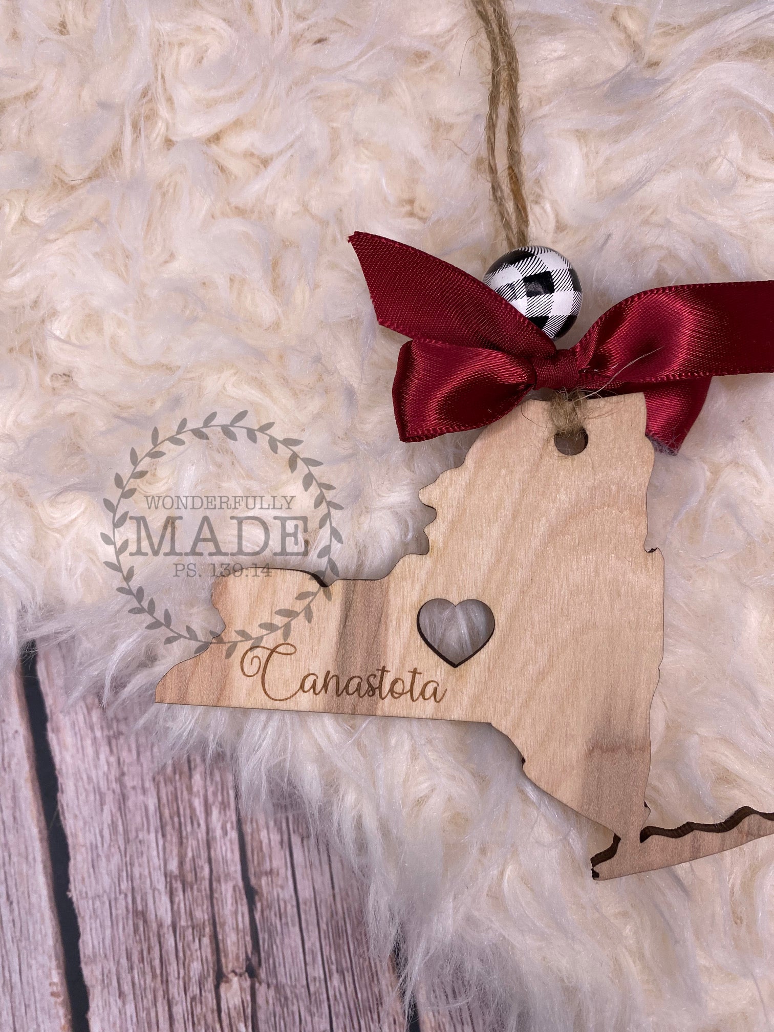 Show your love for your home state with this simple wood ornament. All 50 states available, and can be engraved with the city of your choice (in the order notes, add which city you'd like engraved on the ornament).